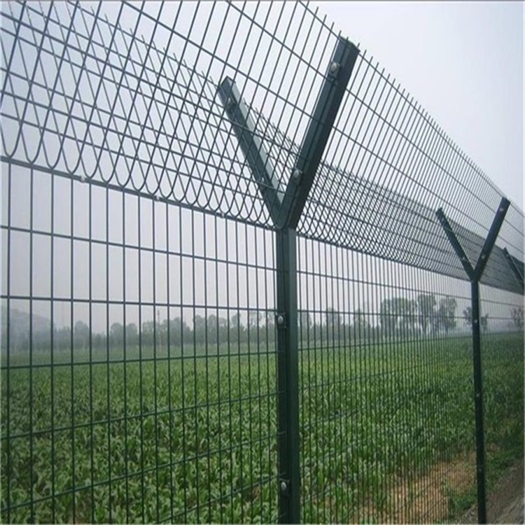 機(jī)場(chǎng)圍界網(wǎng)通常采用Y字型立柱,這種造型是為了方便在頂部架設(shè)刀片刺網(wǎng),這種組合模式可以大大提高機(jī)場(chǎng)圍界網(wǎng)的安全防護(hù)性能。