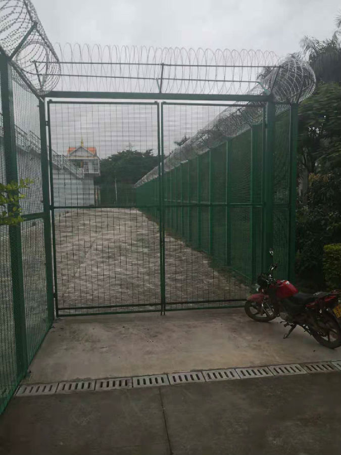 監(jiān)獄外圍墻需要安裝一種防攀爬得圍欄,這種鐵絲網(wǎng)一般是直接安裝在地面上,高度可達(dá)四到五米高,頂部加上放上一圈又一圈的刺絲滾籠。部署上的這種護(hù)欄防護(hù)網(wǎng)*好采用密目防爬網(wǎng),這種防爬網(wǎng)又叫358安全圍欄,它的網(wǎng)孔是極小的,人的手指都伸不進(jìn)去,導(dǎo)致無法借力攀爬,犯罪份子想翻墻而過的話也是干瞪眼。
