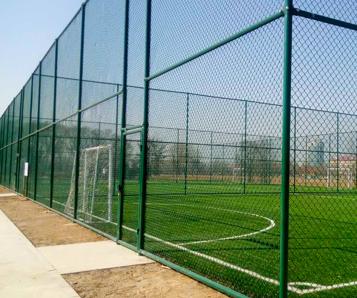 邊框能夠挑選兩種方法拉緊勾花網,一種為直接用PVC包塑絲直接環繞來固定勾花網,另一種為邊框焊接u型卡,勾花網經過8cm的鋼筋棍來拉緊勾花網,鋼筋棍在U型卡用螺絲固定,兩種方法可到達球場護欄網的彈性力,價格直接環繞的要廉價。