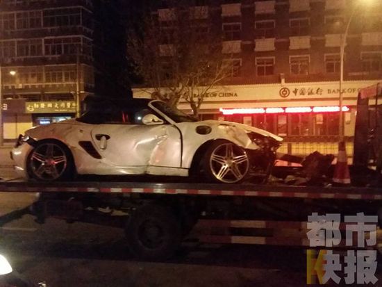 目擊者介紹,當時保時捷撞飛了護欄,徑直撞上了對向開來的出租車。而這鋼鐵護欄又是怎么到了十米開外的路邊道沿上呢?
