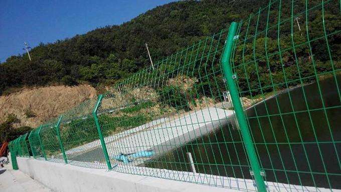 此圖護欄為雙邊絲護欄網,雙邊絲護欄網的產品優點: 1. 網格結構簡練 美觀實用; 2. 便于運輸,安裝不受地形起伏限制; 3. 特別是對于山地、坡地、多彎地帶適應性極強; 4.價格中等偏低,適合大面積采用。