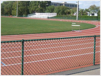 產品樣式主要有兩大類:1、編織網式田徑場圍網,主要網面材料采用編織網,也就是勾花網,網孔均勻,美觀大方,彈性好。2、焊接網式田徑場圍網,主要網面材料采用焊接網,焊接網材質為低碳鋼絲,網絲硬,防護性強