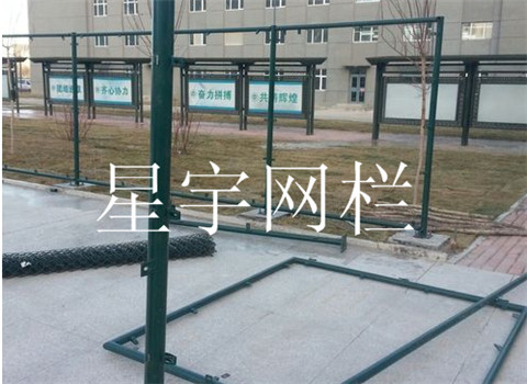 3接下來(lái)就是安裝圍網(wǎng)了,先將勾花網(wǎng)展平,然后穿插入鋼筋棍,形成正方形的圍網(wǎng)。